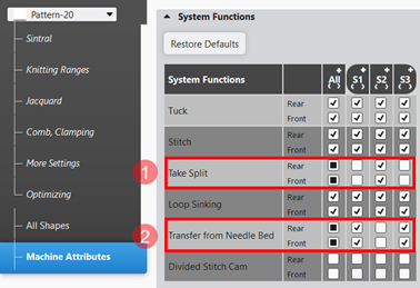 Yapılandırma tool window in the ribbon, select the Makine öznitelikleri tab and make the required settings under Sistem fonksiyonları:
