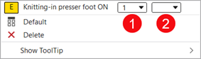 1 | Selection of the presser foot type mounted to the machine |