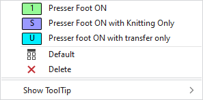 In Configuration, Machine Attributes tab select the type for every system in the Presser Foot section. |