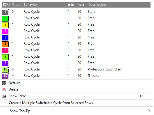 Select a cycle counter. The entries that were applied to the pattern and entries that are marked in the Pattern Parameters