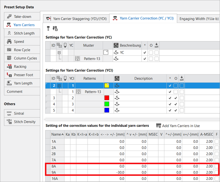 Working with Yarn Carrier Corrections in CA: