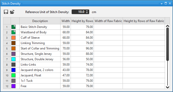 In the stitch density table you can also enter the stitch density of the raw fabric as a guideline. This value does not affect the pattern.
