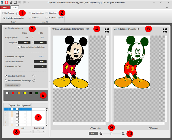 Anzeige des Ziel-Bildes mit der vorgegebenen Farbanzahl | ||||