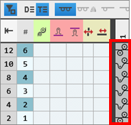 Beim Zeichnen im Designmuster kann mit Hilfe der Cursor-Attribute ausgewählt werden, ob die Steuerspalten-Daten der Designreihen eingetragen werden.