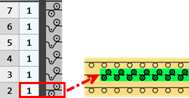 Alle Musterreihen werden beim Zeichnen in das Designmuster eins zu eins eingezeichnet. Dies bedeutet, dass die entsprechende Anzahl an Musterreihen im Designmuster überschrieben werden. |
