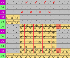 - Folgende zwei Arbeitsschritte durchführen, um das Strickelement mit Wiederholung ins Muster einzuzeichnen.