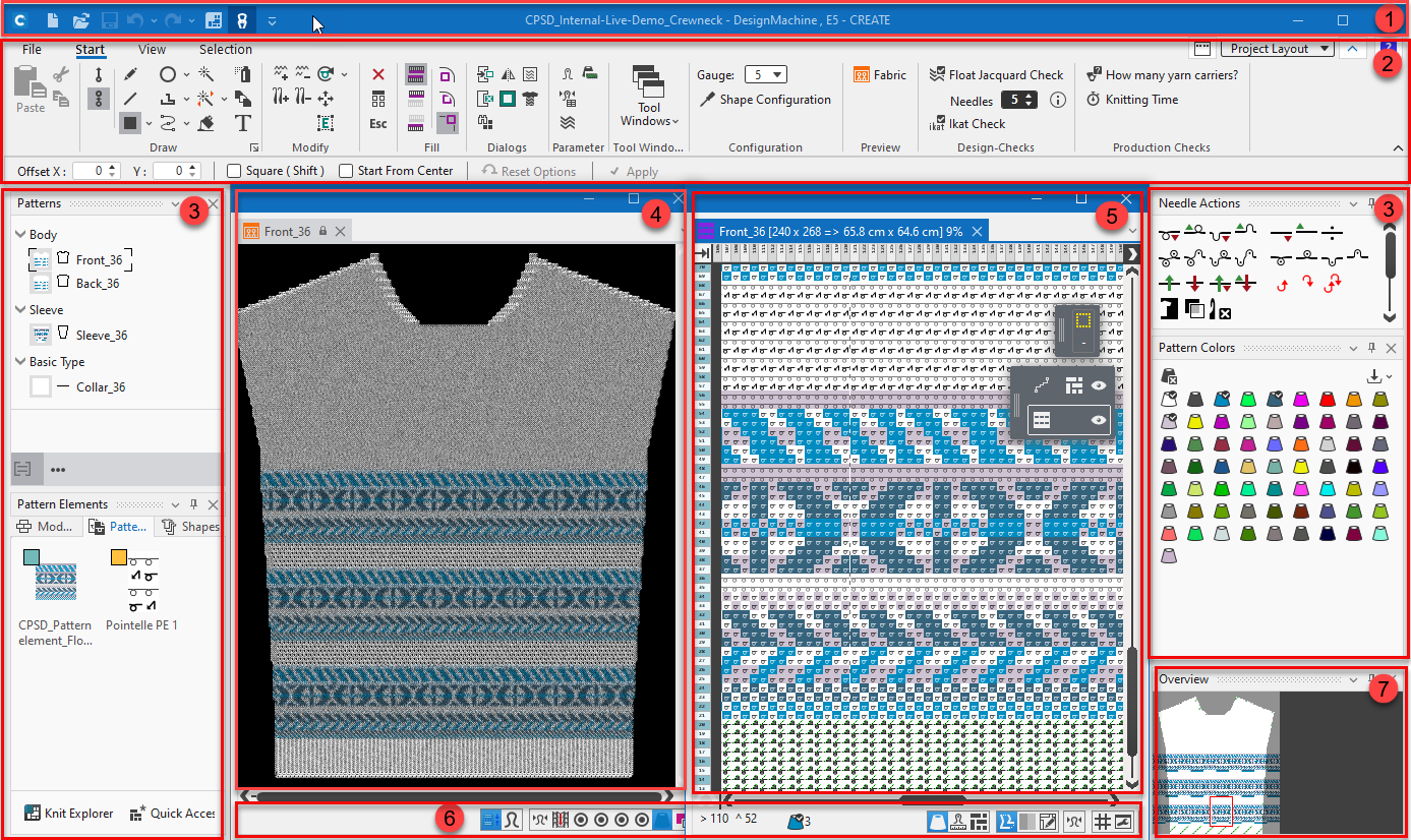 Die Benutzeroberfläche orientiert sich an der neuen Musterungssoftware CREATE PLUS für Stricktechniker. Dies soll auch die Kommunikation zwischen Strickdesignern und Stricktechnikern und den digitalen Datentransfer erleichtern.