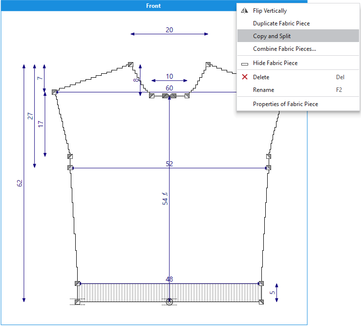 - Vom Strickteil sind zwei getrennte Strickteile für links und rechts erstellt.