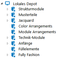 In diesen schreibgeschützten Verzeichnissen befinden sich alle Strickelemente von STOLL mit den entsprechenden Eigenschaften für jeden Strickelement-Typ. - Zur besseren Strukturierung sind in den Verzeichnissen weitere Unterverzeichnisse angelegt.