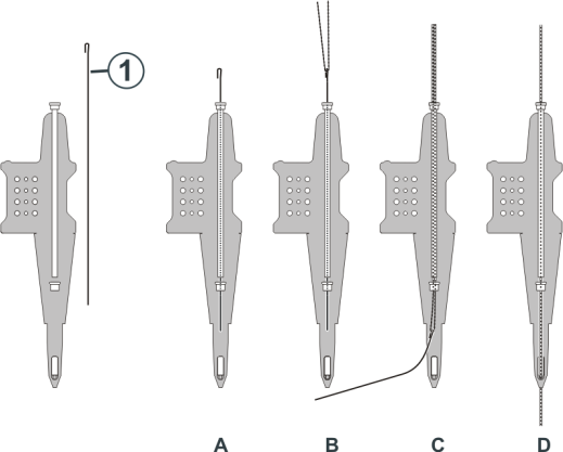 Verwenden Sie dazu die Einfädelhilfe (1).