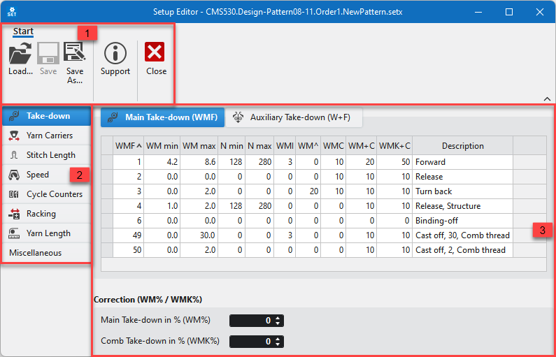 Im MC-Setup Editor sehen Sie die Setup Daten des erstellten Musters und können Änderungen vornehmen.