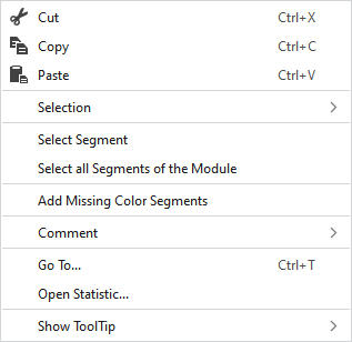 Die Funktionen der Menüleiste Selektion stehen auch im Kontextmenü zur Verfügung. |
