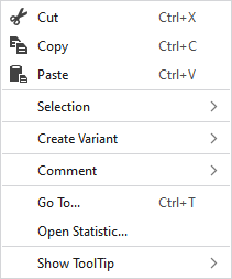 Die Funktionen der Menüleiste Selektion stehen auch im Kontextmenü zur Verfügung. |