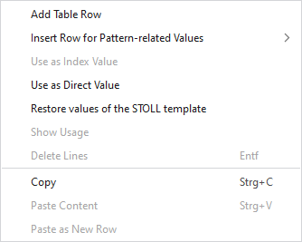 Kontextmenü auf den Einträgen (Zweite Festigkeit)