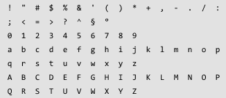 Zeichensatz-Symbole zur allgemeinen Verwendung.