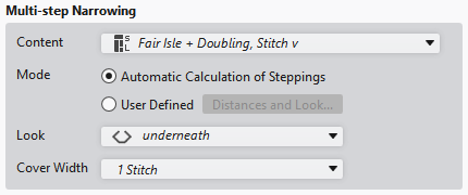 Die Einstellungen für Mehrstufig Mindern sind abhängig von der Variante die für den Kurventyp Fair Isle ausgewählt ist.