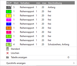 - Freien Rapportschalter Farbe+(?) direkt im Kontextmenü auswählen und in Steuerspalte einzeichnen