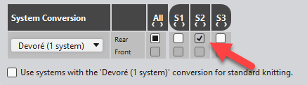 - In der Rubrik Systemfunktionen unter Systemumbau die Einstellung Devoré (1 System) auswählen.