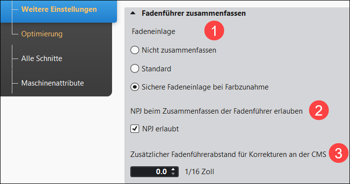 - Gewünschte Vorgaben für das Fadenführer zusammenfassen vornehmen.