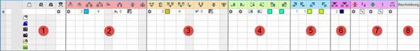 Alle Symbole zur Kennzeichnung der Tabellenspalten -