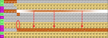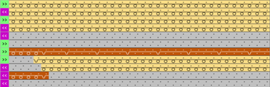 Zeichnen Sie das Designmuster mit Garnfarben oder mit Magazinfarben, damit für alle Muster in einem Auftrag eine gemeinsame Fadenführer-Grundstellung (auftragsbezogene Daten) ermittelt werden kann. | |