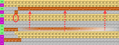 - Intarsia-Bindung wird entsprechend der Schlittenhubrichtung eingetragen.