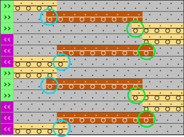 Beispiel: Modul Masche vorne, Intarsia-Bindung | |