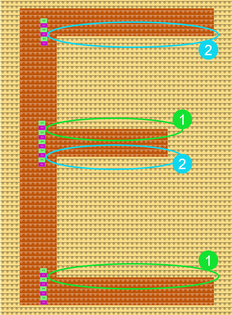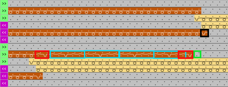 Verbindung an der linken Kante eines Farbfeldes zu seinem daneben liegenden, linken Farbfeld. Jedes einzelne Farbfeld wird mit dem Nachbarfarbfeld verbunden. Dies ergibt eine geschlossene Kante zwischen den beiden Farbfeldern.