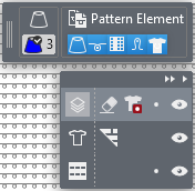 Wenn ein Schnitt auf das Muster gelegt ist, können Sie sowohl den Schnitt als auch das Muster unabhängig voneinander bearbeiten.