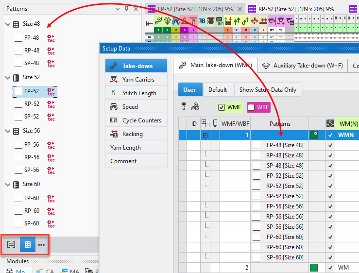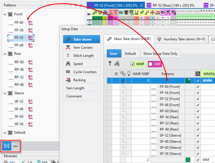 - Musterteil aus dem Knit Explorer in das Toolfenster Module ziehen.