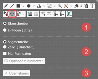 Auswahl für den gewählten Modus Überschreiben / Einfügen