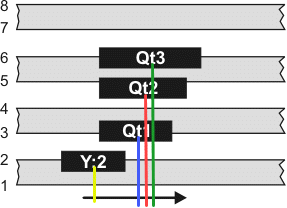 • Der Qt-Fadenführer wird auf Spur 3 bis Spur 6 eingesetzt.