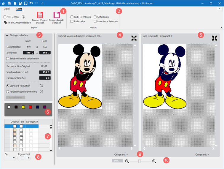 : Entspricht der Eingabe unter Farbanzahl im Ziel: .