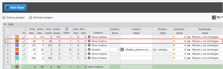 - Neue Schnittlinien in Tabelle einfügen und gewünschte Werte für den Grundschnitt eingeben.