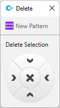 Durch Klicken auf die Pfeile wird der selektierte Bereich gelöscht und entsprechend der Pfeilrichtung mit den Musterdaten zugezogen. Durch Klicken auf das Kreuz in der Mitte wird der selektierte Bereich gelöscht, ohne zugezogen oder gefüllt zu werden. |