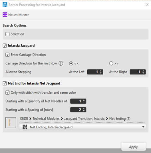 - The Border Processing for Intarsia Jacquard dialog box appears.
