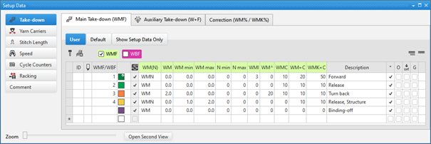 WM | Fabric take-down value when this is not changed in accordance with the quantity of needles. | |
