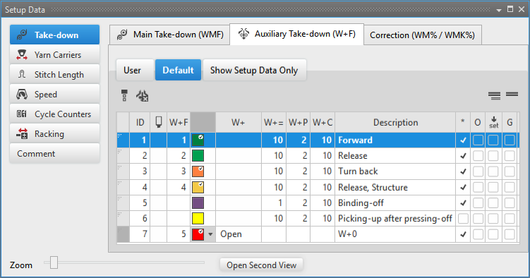 I. Open auxiliary take-down (W+F) tab and select / change the entry: