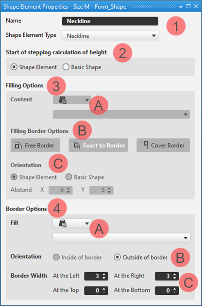 Horizontal and / or vertical shifting of the reference point in the shape element or in the basic shape.
