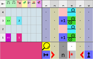 - Make the desired entries in the editor with the tools for Color Arrangements from the CA and Actions d'aiguilles / couleurs tabs.