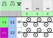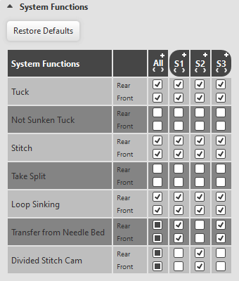 - Allocate knitting system (S2 e.g.) in the corresponding control column.