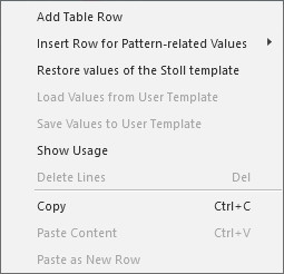 Context menu on the entries (plating offset)