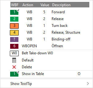Select a WBF entry directly. The entries that are used in the pattern and those that are marked in the Données Setup with |