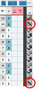 - Enter the desired control column data in the corresponding control column of the corresponding technical rows with needle actions.