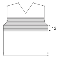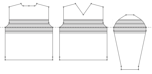 The armhole startpoint in each fabric piece serves as reference point for the synchronization of the colored stripes.