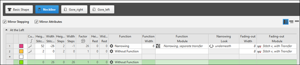 Tagli tool window. - In the tool window, the existing shapes of the pattern project are displayed.