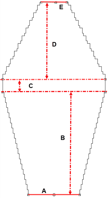 Specifiche per la lunghezza della maglia nella fronture anteriore e posteriore |