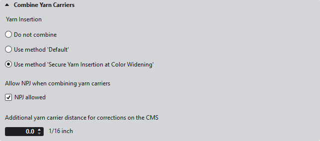 Adjust the safety distance in order to make corrections on the machine (YC/YCI in the setup). Allows narrower yarn carrier distances in the case of coarser gauges. Range 0-20 1/16" (NIC) | |