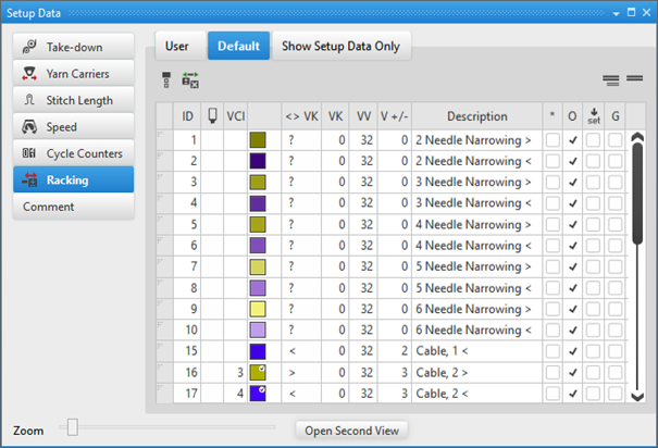 I. Open the Racking correction tool (VCI) window and select and change an entry in the local knitting element:
