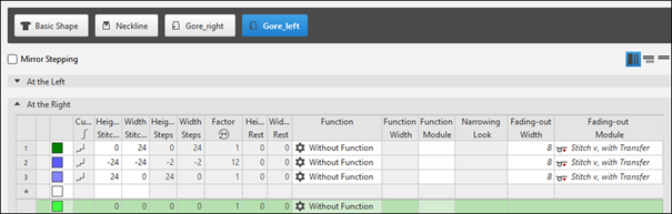 Kesimler tool window. - In the tool window, the existing shapes of the pattern project are displayed.